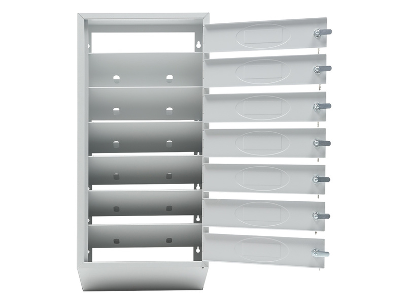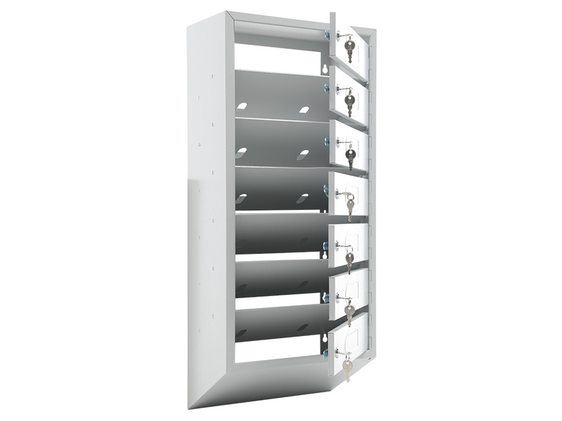 - Каждая секция имеет дверцу, запирающуюся индивидуальным ключевым замком (2 ключа в комплекте).
